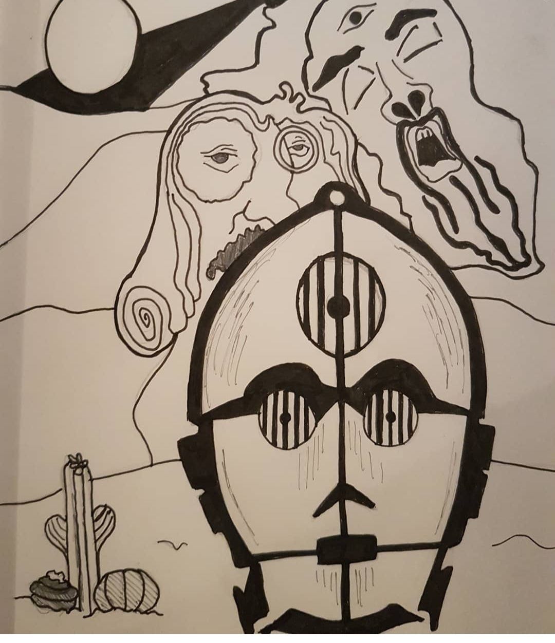 A short existential poem featuring a protocol droid and psychedelics. Bad art and poetry by me. May the 4th be with you.